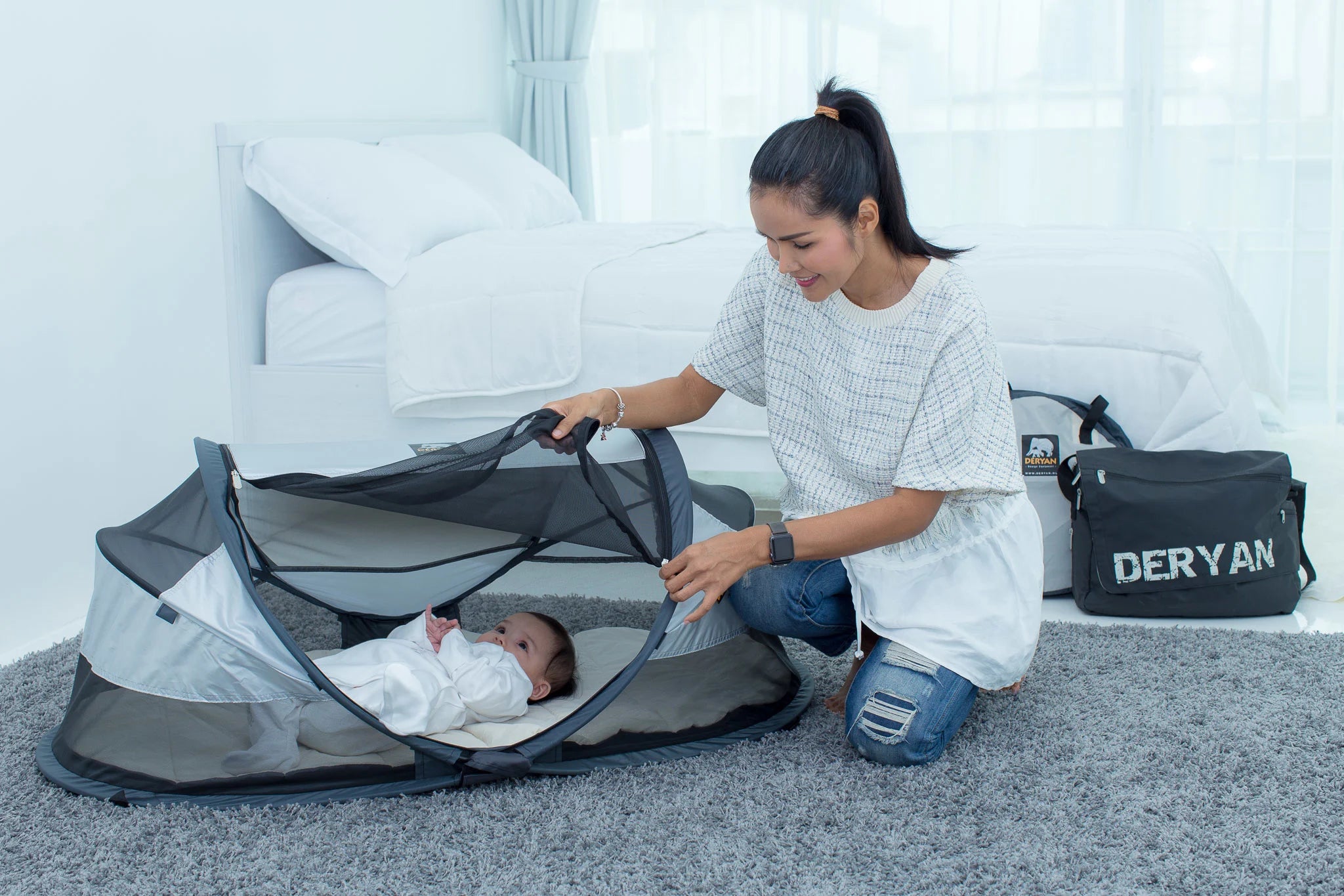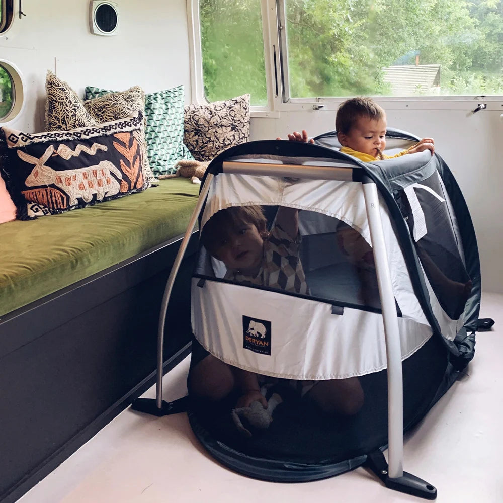 Nos lits de camping sont conçus en fonction de vos propres souhaits et expériences. Ils répondent à toutes les caractéristiques et labels de qualité ; De cette façon, vous et votre tout-petit pourrez en profiter sans être dérangés ! Les lits de camping DERYAN protègent à 50 % contre les UV et contiennent un maillage de haute qualité avec un maillage inférieur à 1 mm, afin qu'aucun moustique ou insecte ne puisse y pénétrer.