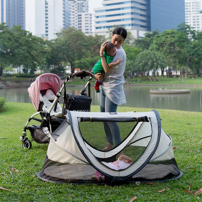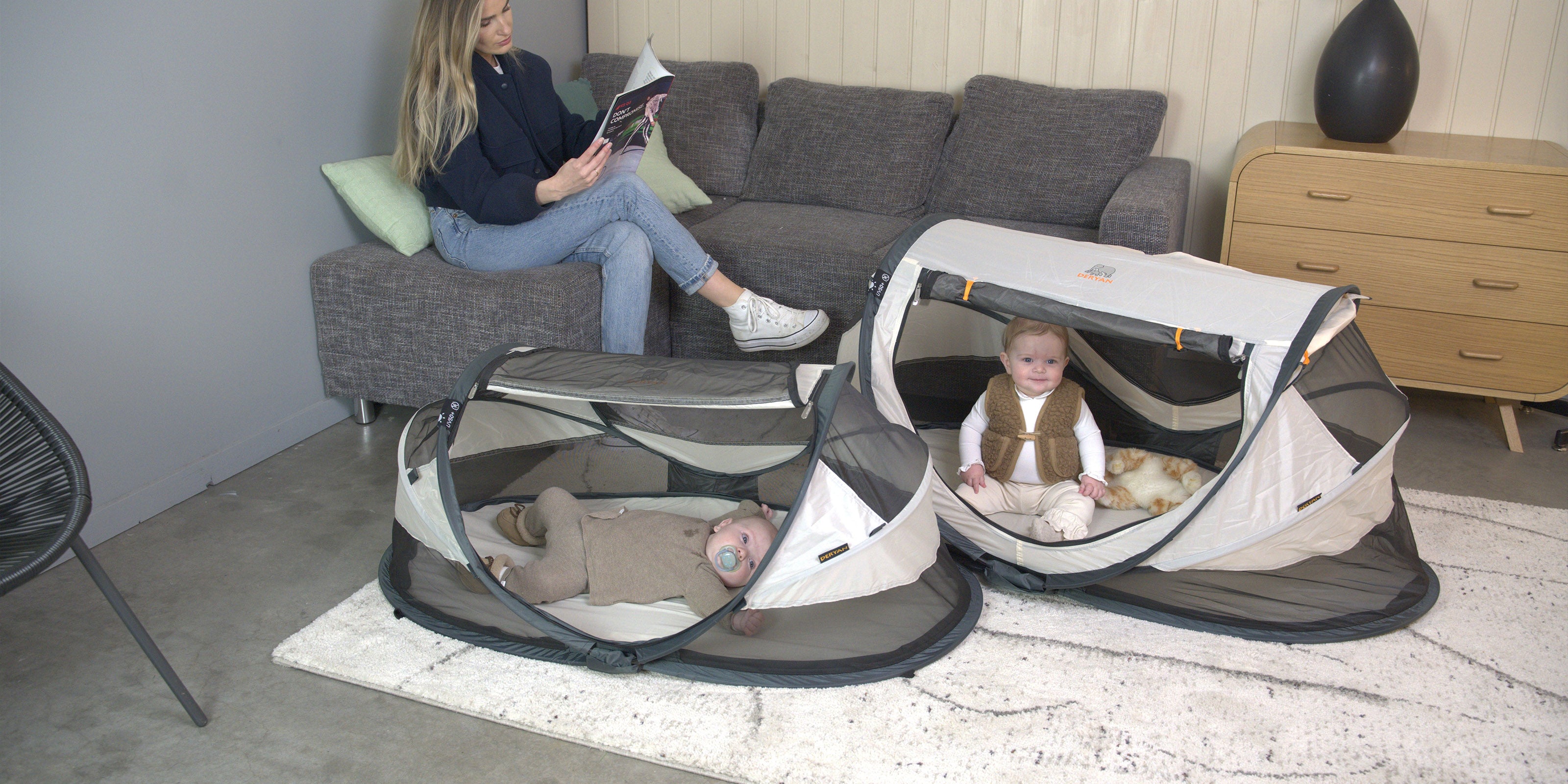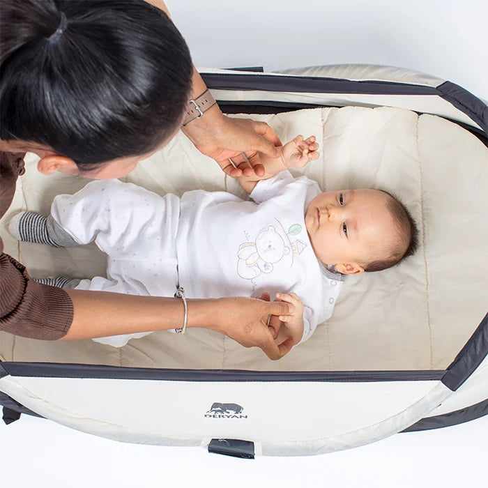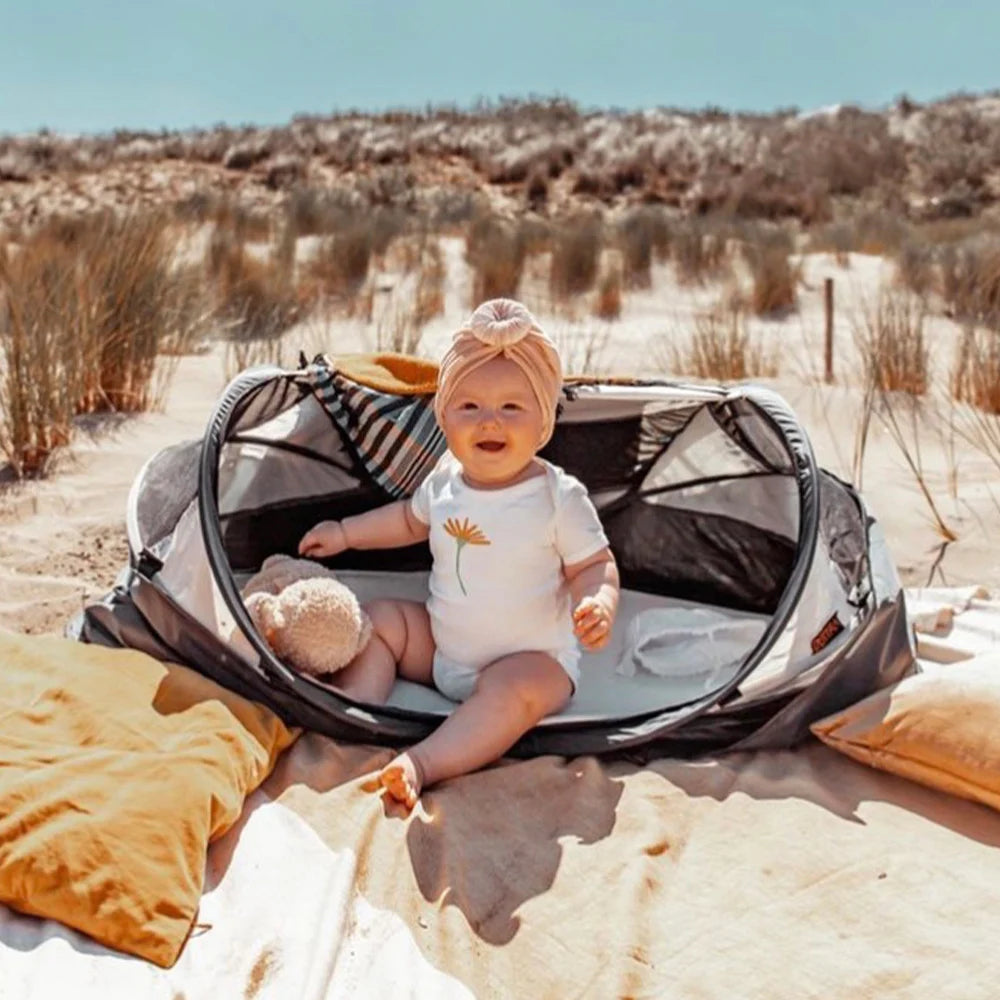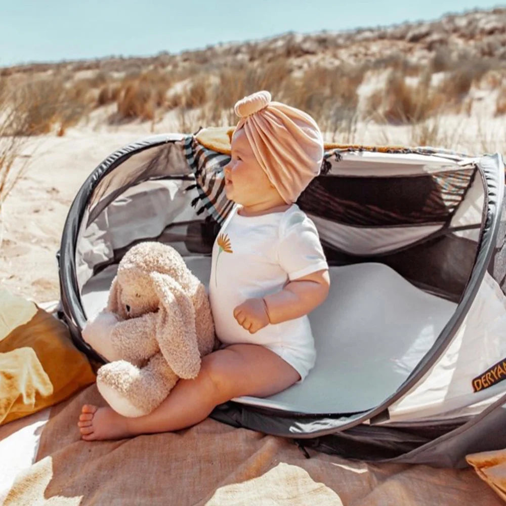 Le lit de camping lourd et traditionnel appartient au passé. Les lits de camping sont légers ; maximum 2,4 kg, voire moins de 1,0 kg pour les nourrissons. Ils sont prêts en 2 secondes grâce au principe pop-up breveté. Emportez les lits de camping DERYAN avec vous en vacances, à la plage, en famille, entre amis ou tout simplement dans le jardin.