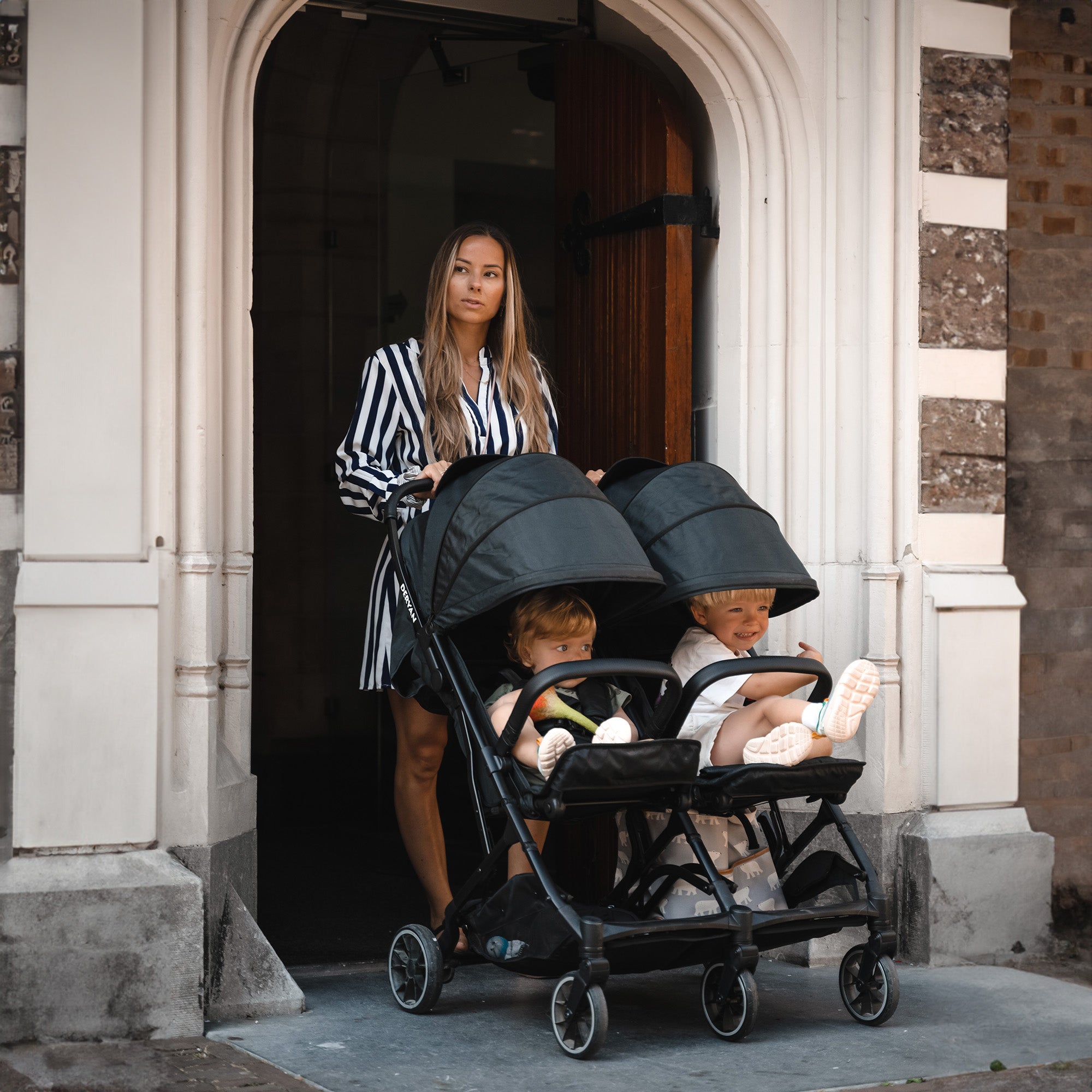 Onze duo buggy is ontworpen om twee kleintjes moeiteloos en veilig te vervoeren. Daarom hebben we tal van functies ingebouwd om ervoor te zorgen dat je met alle vertrouwen kunt wandelen.