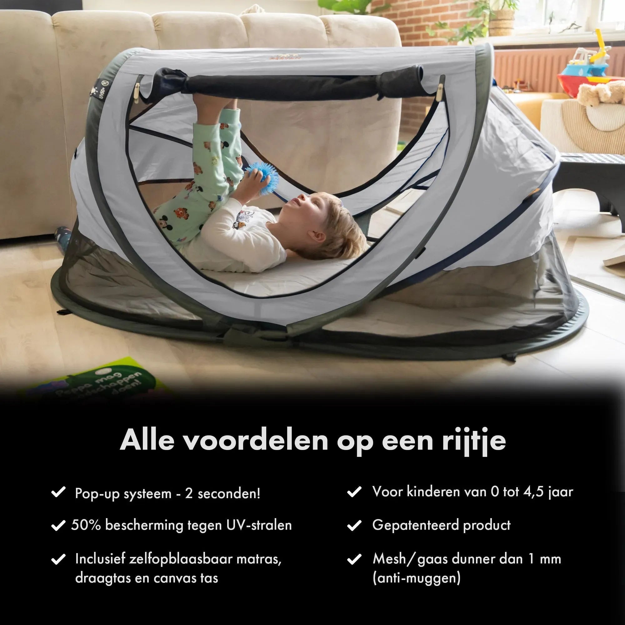 Binnen 2 seconden staat de Deryan Peuter Luxe! Opvouwen is net zo eenvoudig: binnen enkele ogenblikken heb je de Peuter Luxe weer opgevouwen en opgeborgen.